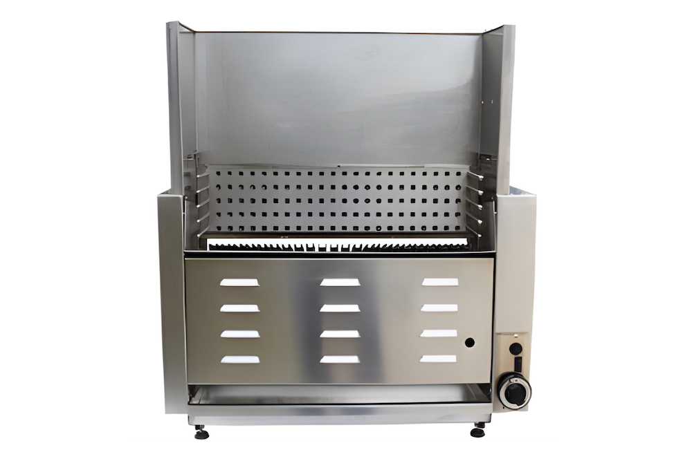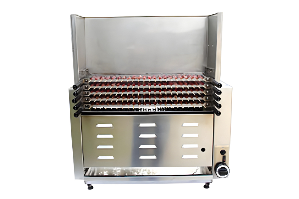 Si tratta di un grill automatico specializzato per la cottura a gas degli arrosticini di pecora abruzzesi. È costruito in acciaio inox per alimenti, indeformabile e rispondente a tutte le normative CE, con certificazione IMQ.