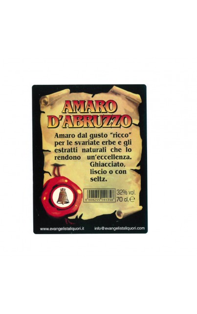 L' "Amaro d'Abruzzo" dal gusto unico per le svariate erbe ed estratti naturali con cui è fatto. Ottimo dopo i pasti, ghiacciato o con selz.